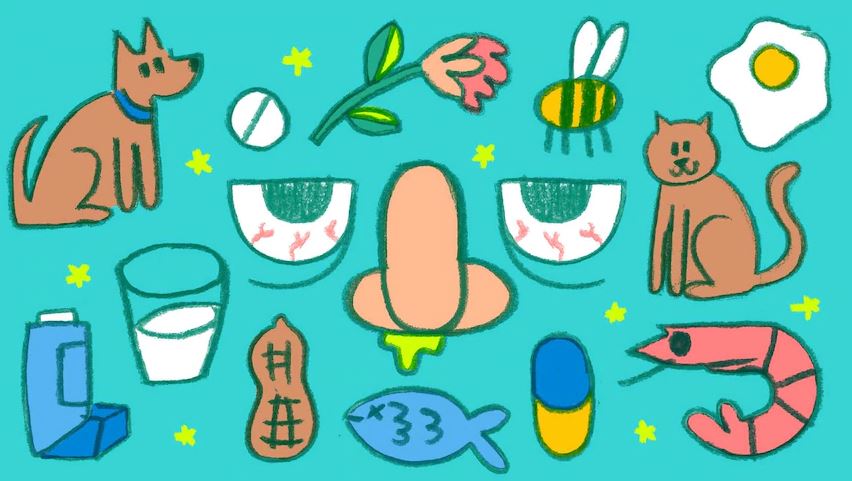 A - Kli i halsen, nysningar och svullna ögon