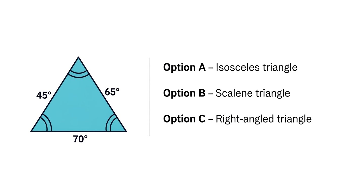 MA 1. A triangle has two sides equal in length and two angles equal in measure. What type of triangle is this?